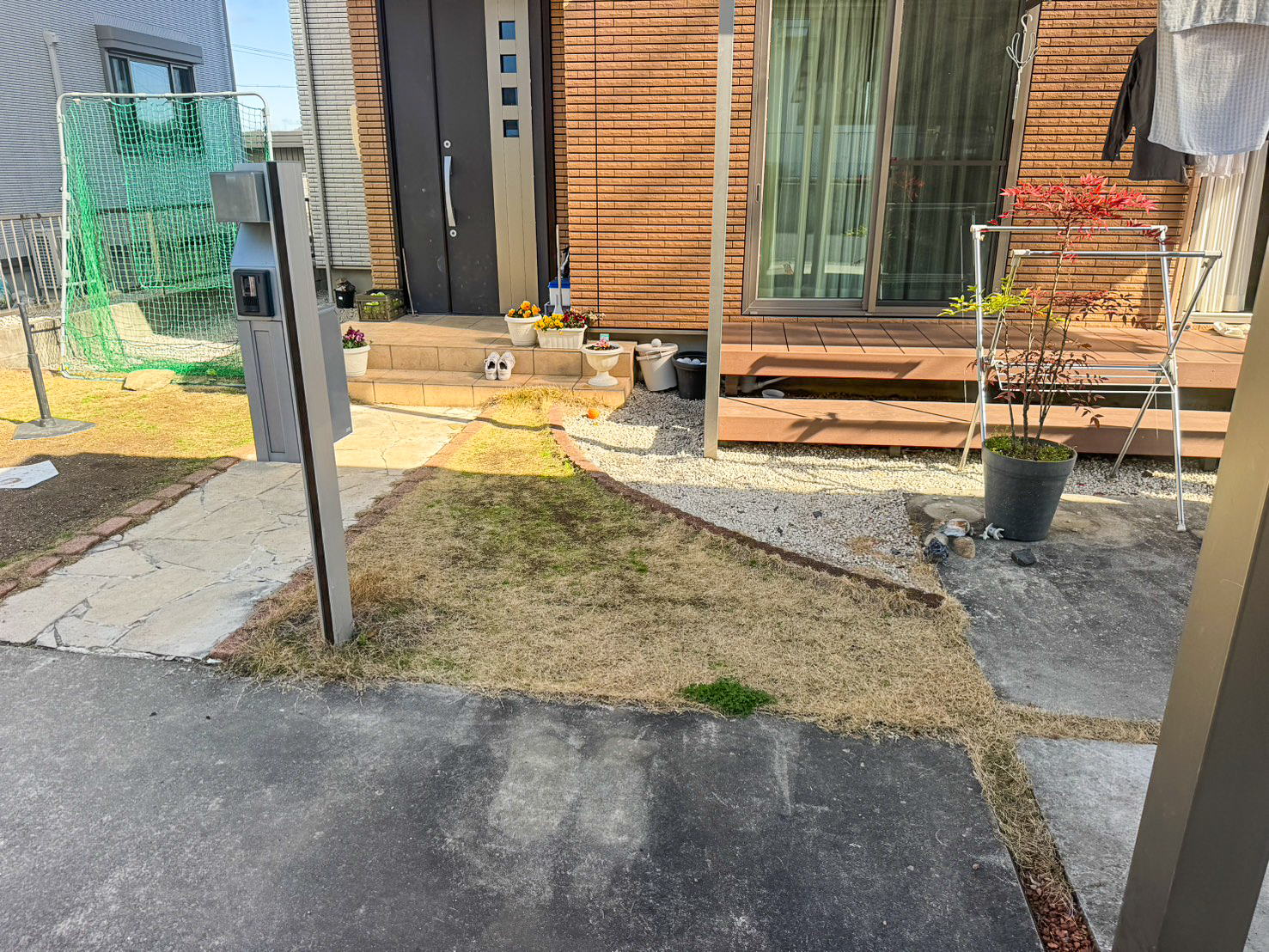施工場所:岐阜県瑞浪市 芝生だったお庭をもっと活用できる空間へ。お子様の練習スペースと花壇づくりのため、既存の芝生を撤去する前の状態です。 お子様の練習場と、奥様念願の花壇が完成。防球ネット付きのバッティングスペースと、ご家族の憩いの場として日常がもっと楽しくなる外構に仕上がりました。 喜んでいただけて幸いです。このたびは御指名いただき、誠にありがとうございました! 中津川市千旦林O様邸水道新設工事 前の記事
